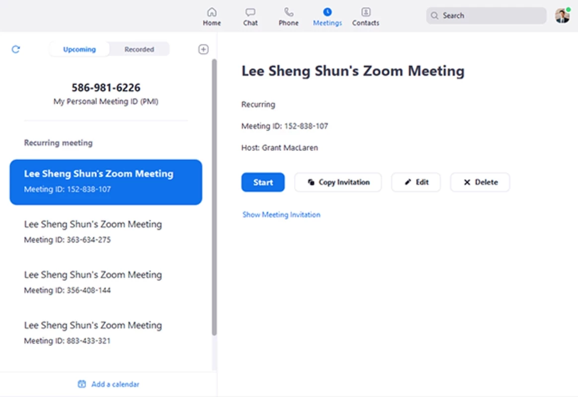 整个设置简单易用。启动应用程序后,转到主屏幕,然后单击“主页”选项卡。它将允许您执行多项任务,例如加入会议、开始新会议、安排、共享屏幕等。大尺寸的图标很容易理解,让您只需单击一下即可轻松访问您最喜欢的选项。如果您想了解会议日程,请单击“会议”选项卡。